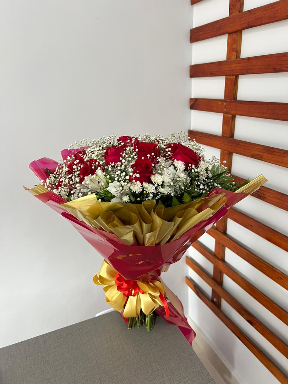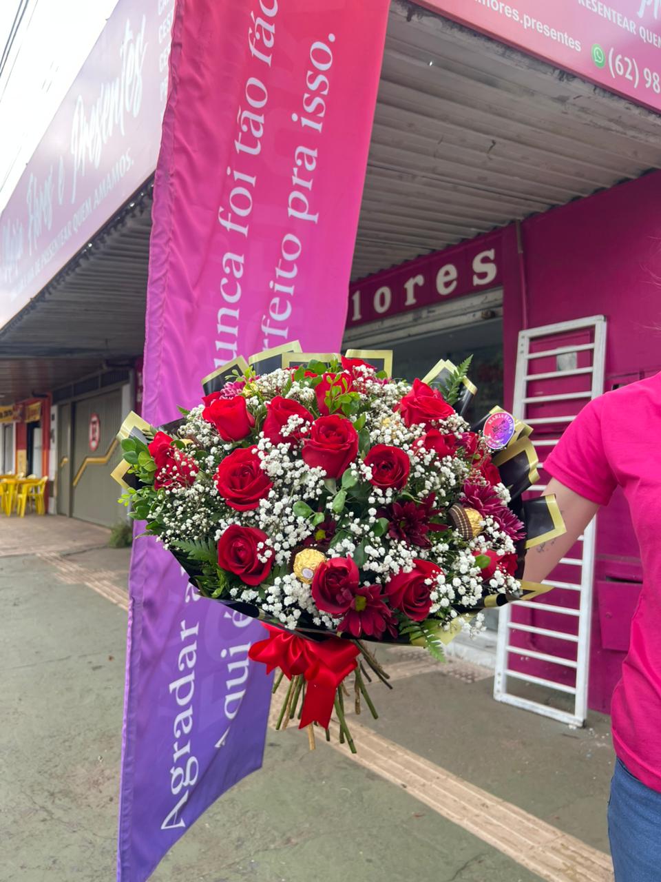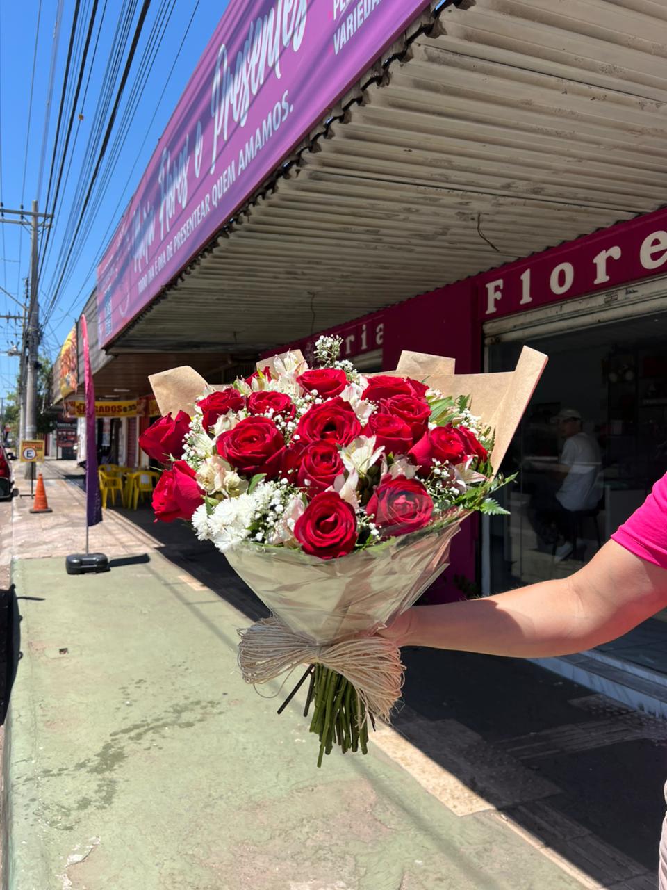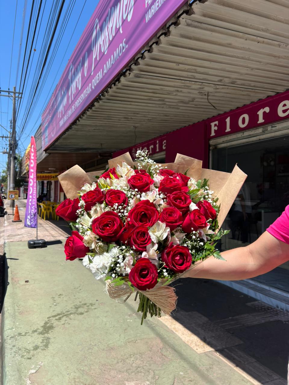 O Buquê Especial com 20 rosas vermelhas é perfeito para quem quer expressar um amor grandioso ou celebrar um momento marcante. Cada rosa é escolhida com carinho e acompanhada por folhagens e flores delicadas, com acabamento impecável.