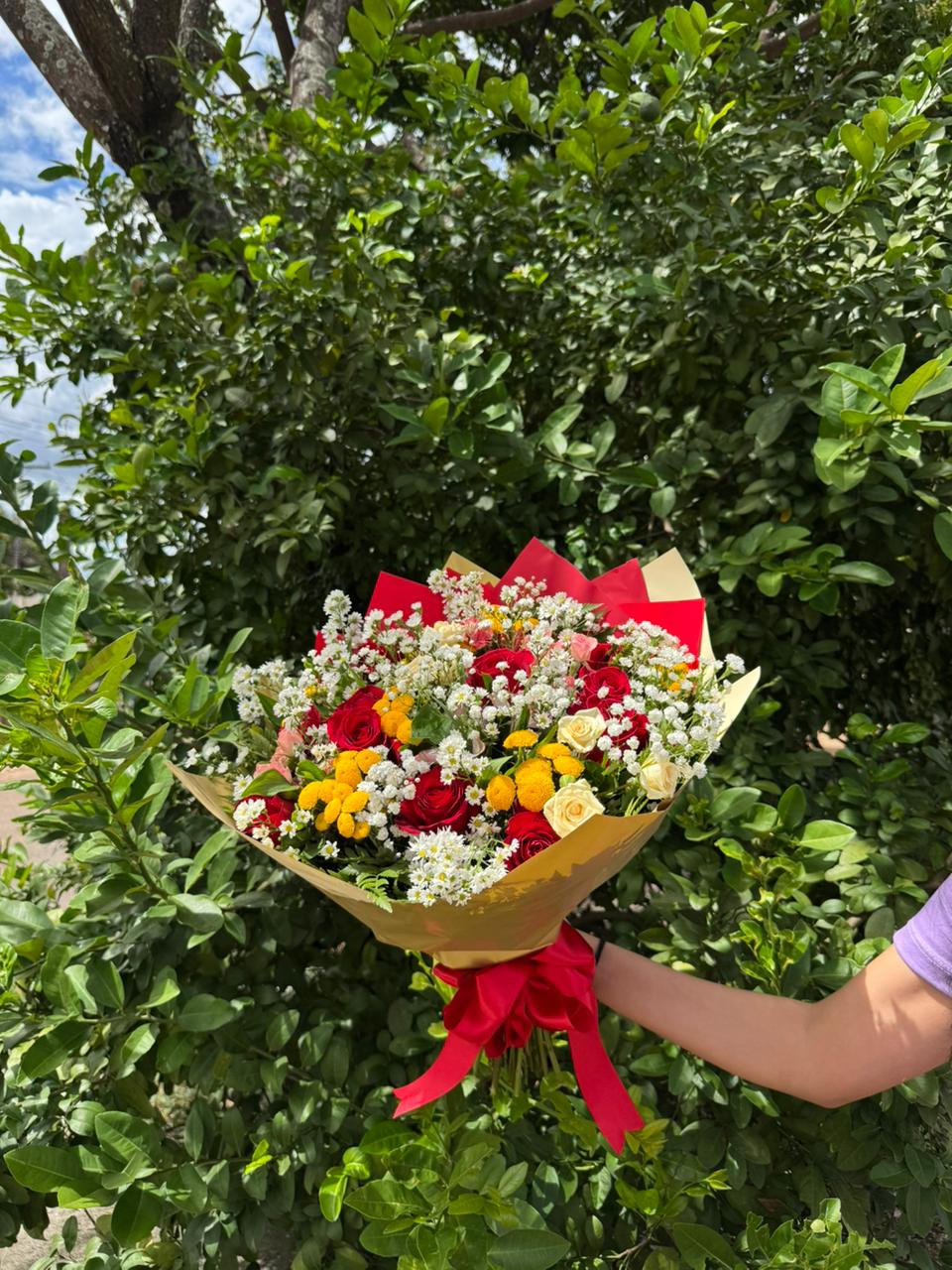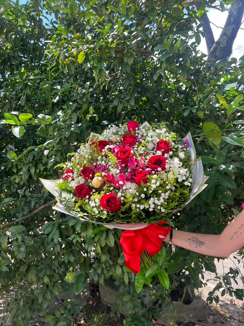 Nosso buquê com 12 rosas vermelhas transmite intensidade, paixão e carinho verdadeiro. As flores são cuidadosamente selecionadas e combinadas com folhagens e flores delicadas, embaladas com muito capricho e finalizadas com um laço harmonioso que combina com o acabamento do buquê.