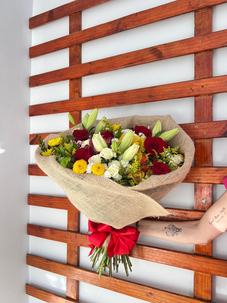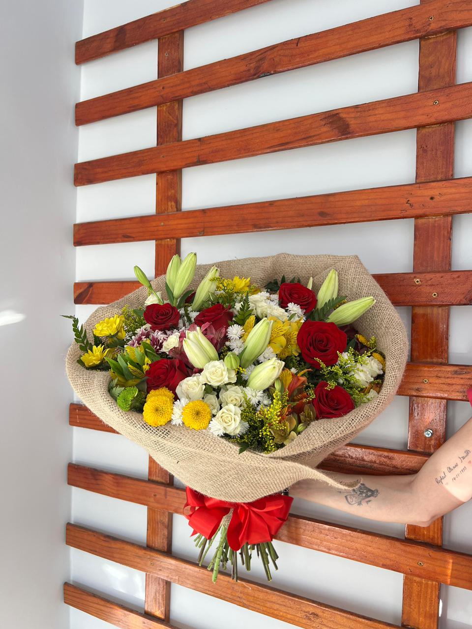 Um buquê imponente, romântico e cheio de significado. A delicadeza dos lírios brancos representa a pureza, a admiração e a sofisticação, enquanto as rosas vermelhas traduzem o amor intenso, a paixão e a entrega. Juntas, essas flores criam uma combinação clássica e atemporal, ideal para quem deseja surpreender de forma marcante.