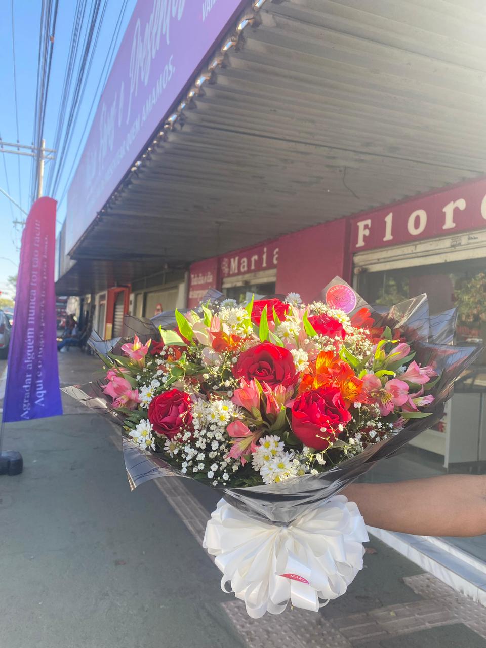 Nosso buquê com 12 rosas vermelhas transmite intensidade, paixão e carinho verdadeiro. As flores são cuidadosamente selecionadas e combinadas com folhagens e flores delicadas, embaladas com muito capricho e finalizadas com um laço harmonioso que combina com o acabamento do buquê.
