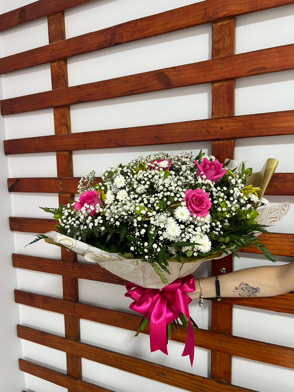 O embrulho é harmônico e sofisticado, com laço decorativo que transforma esse buquê em um presente inesquecível 🎀