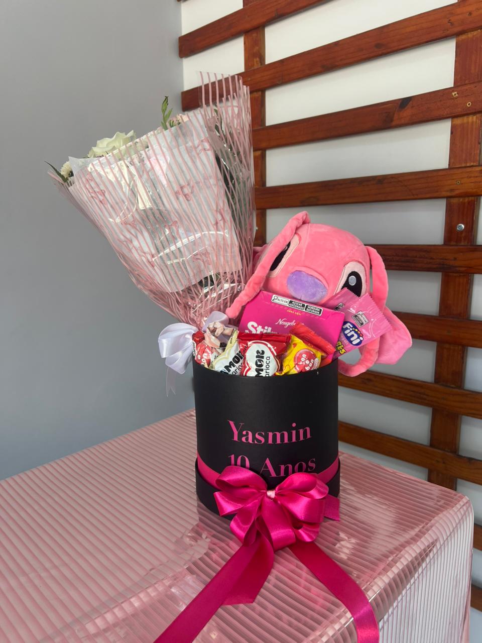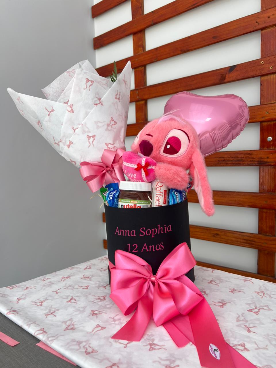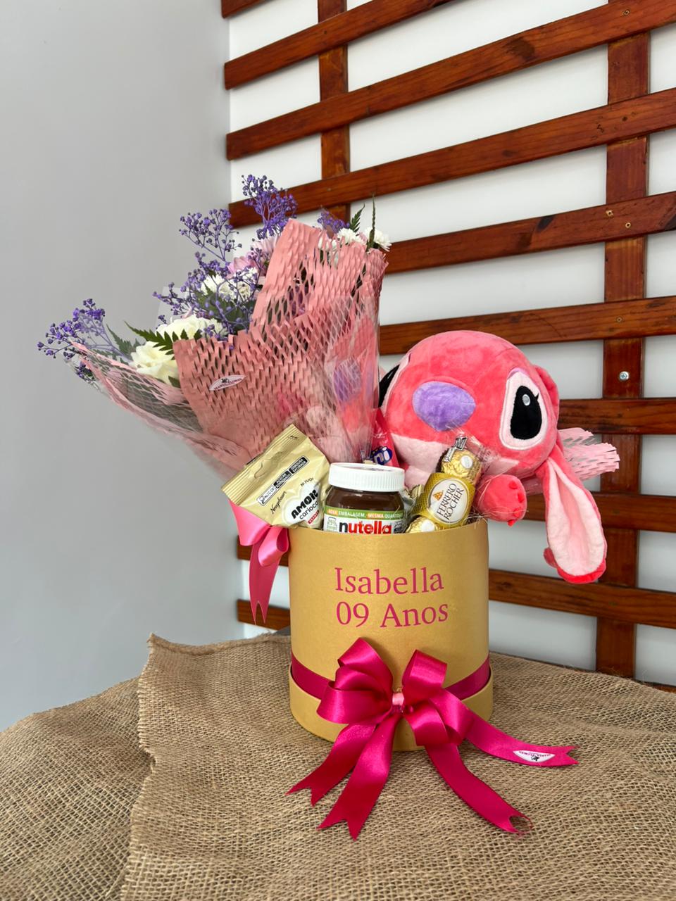✨ Vai pelúcia fofa, chocolates variados nacionais, e um mini buquê de flores naturais.