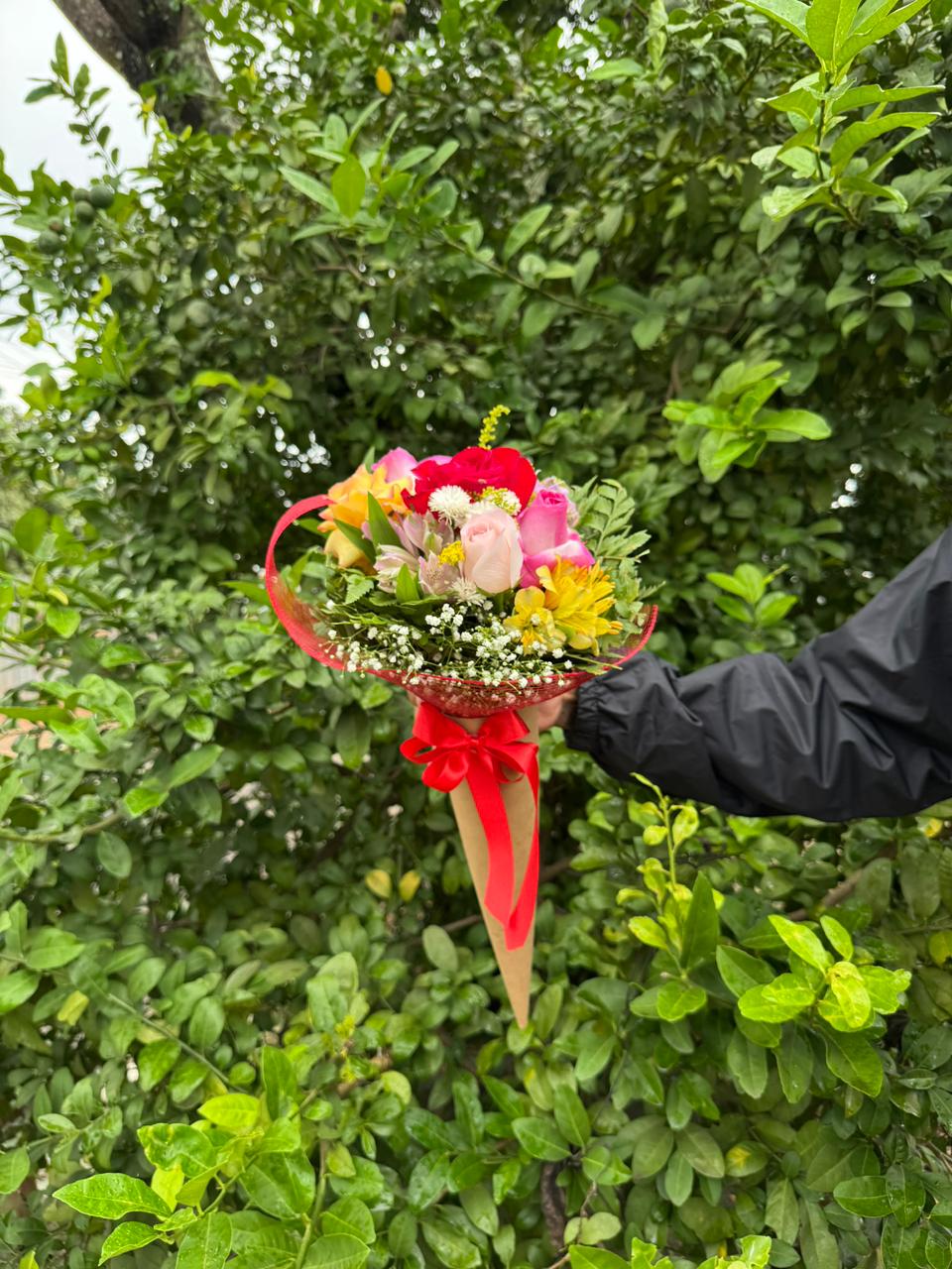 Cada cone floral é preparado com cuidado e harmonia, reunindo cores, formas e perfumes em uma apresentação encantadora.