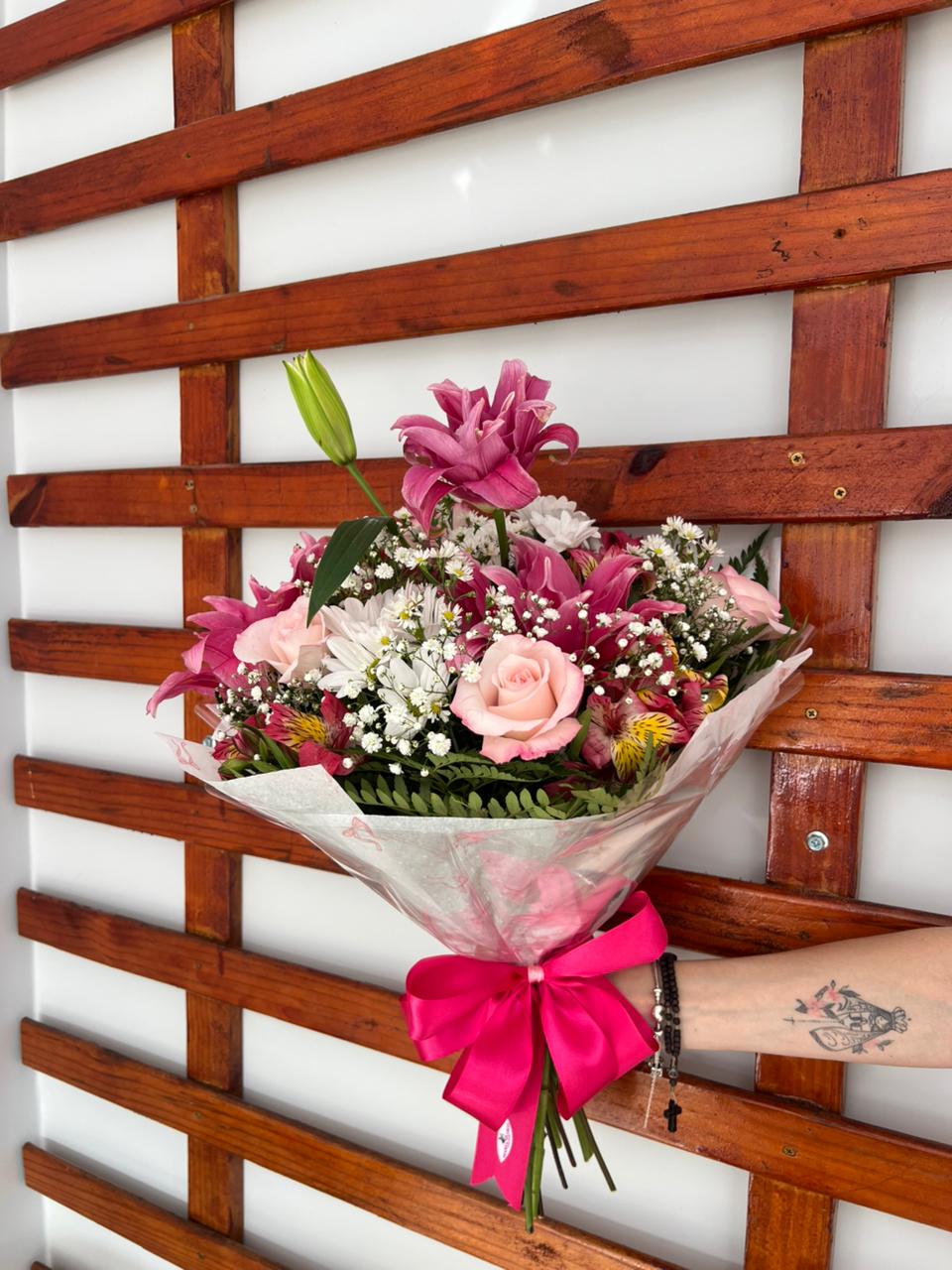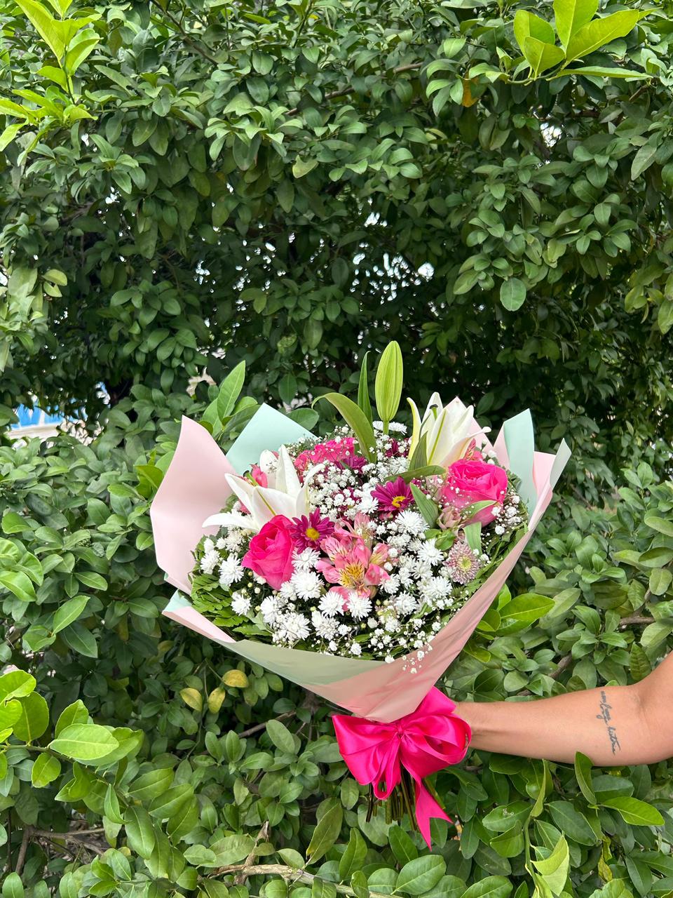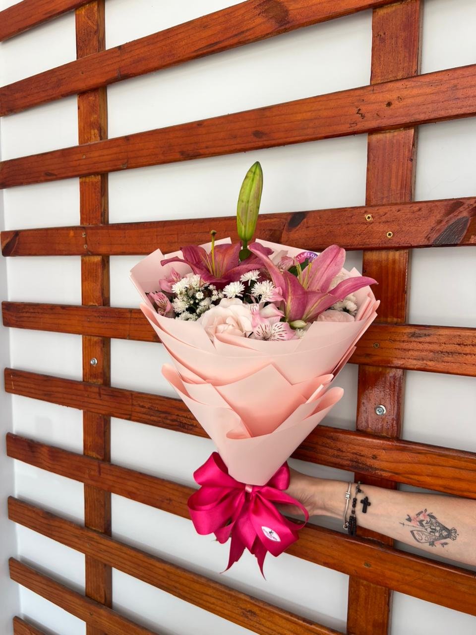 Mini buque com Lirio e Rosas