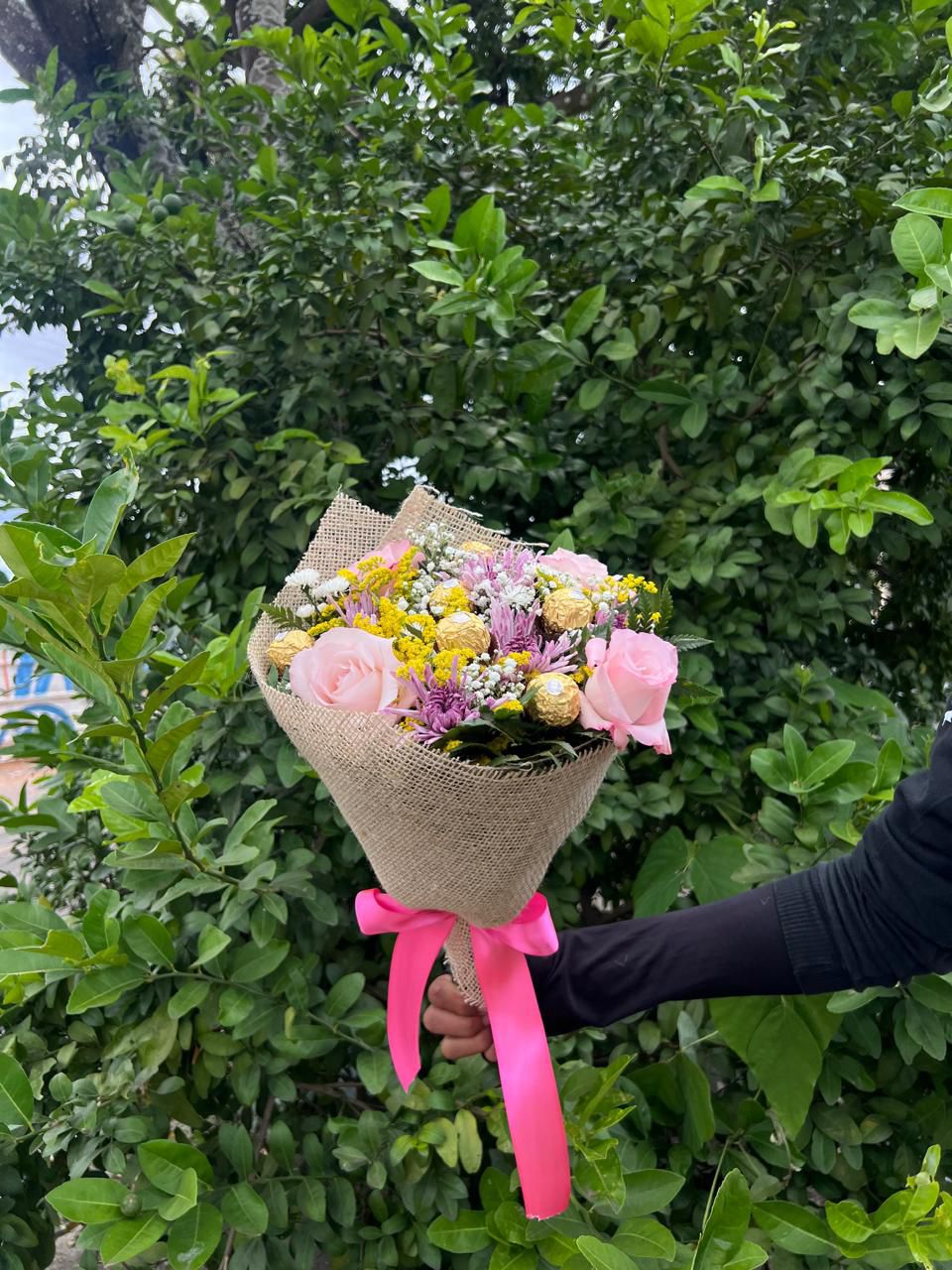 – 6 Ferrero Rocher incorporados ao arranjo, trazendo um toque doce e sofisticado 🍫✨
